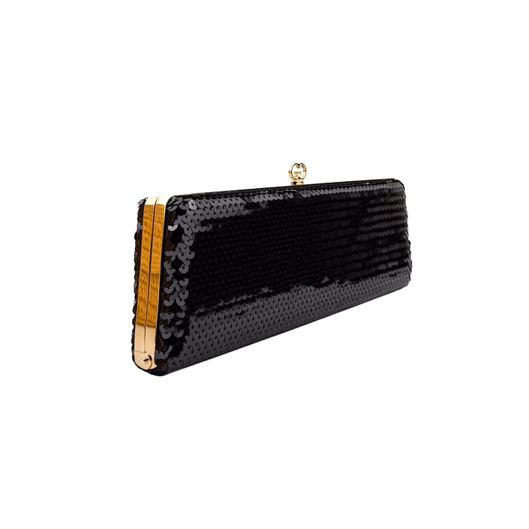 Black Sequin Slim Clutch Bag with Gold Hardware