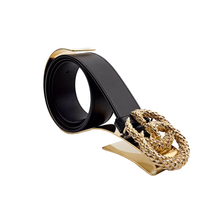 Cintura in Pelle Nera con Fibbia GG Intrecciata Oro