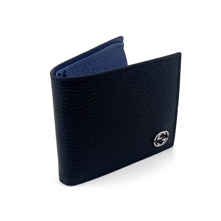 View detailed care guideEssential and contemporary, this Gucci wallet is crafted from navy grained leather and embellished with a palladium-tone GG logo. A refined piece from the late 2010s that blends discreet luxury and functionality.