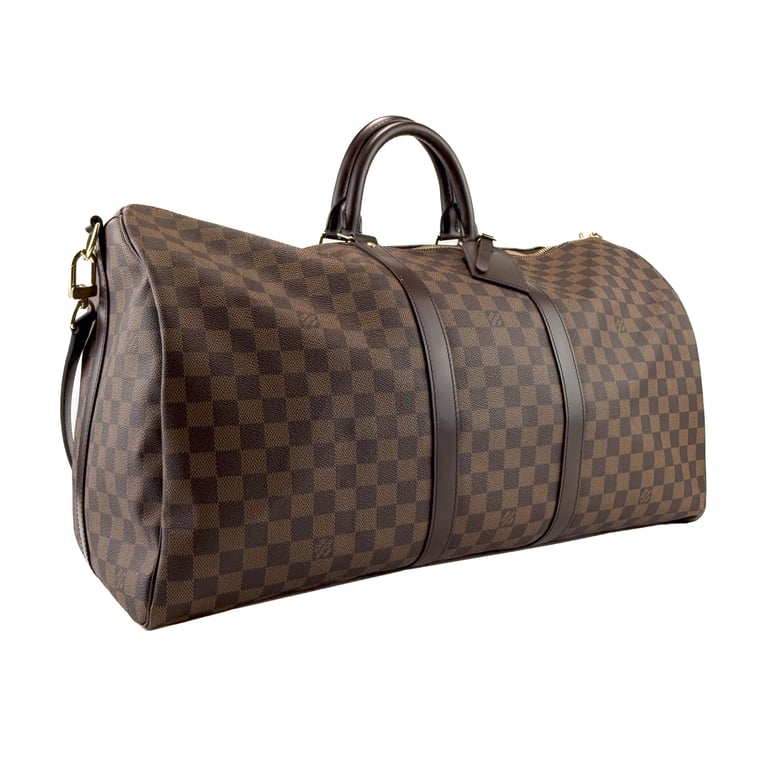 The Louis Vuitton Keepall 55 in Damier Ebene canvas is the ultimate travel companion.